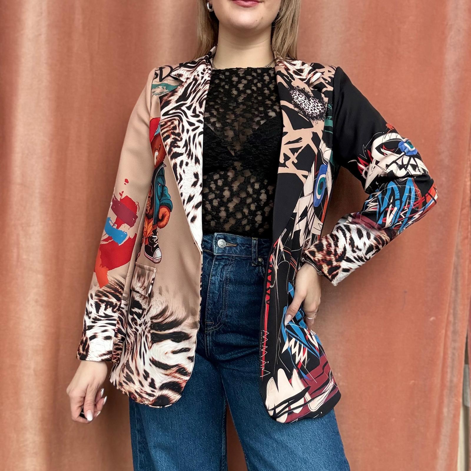 Giacca monopetto foderata dal taglio oversize, perfetta per dare carattere a qualsiasi outfit. Realizzata in tessuto primaverile, è leggera e confortevole.