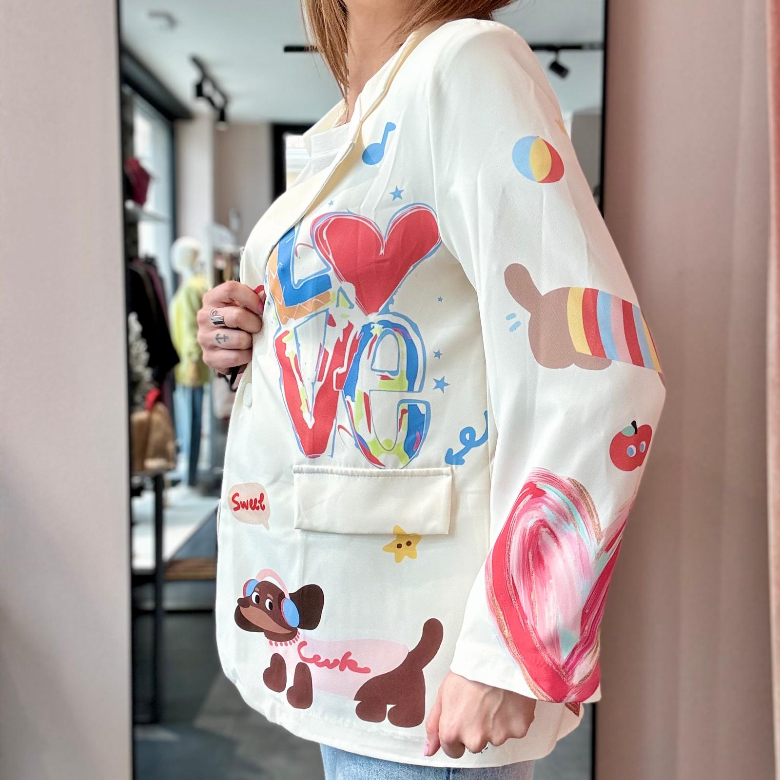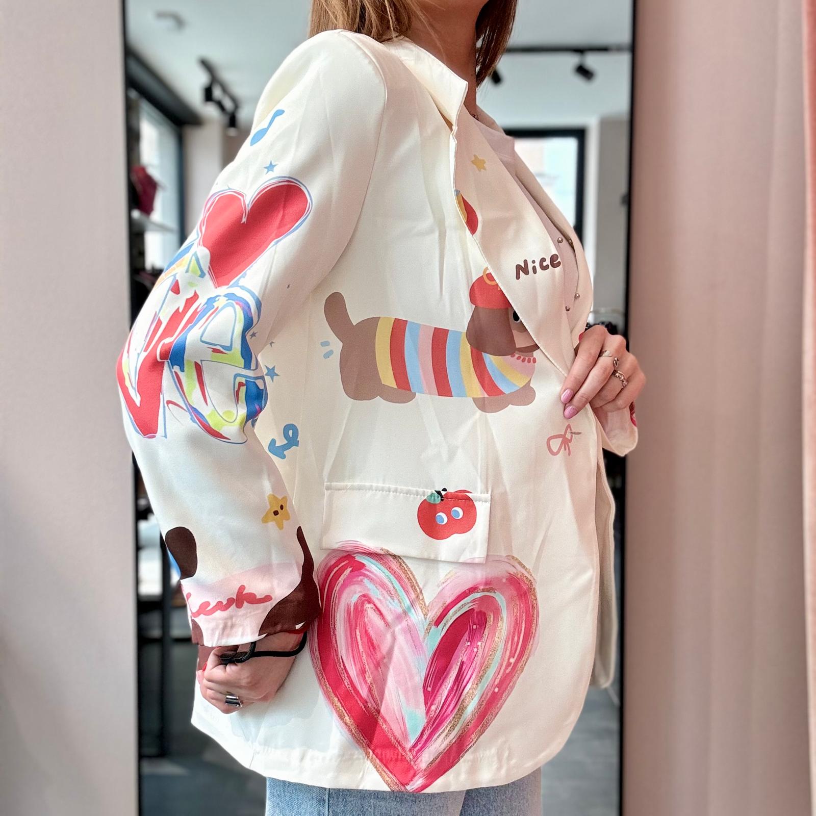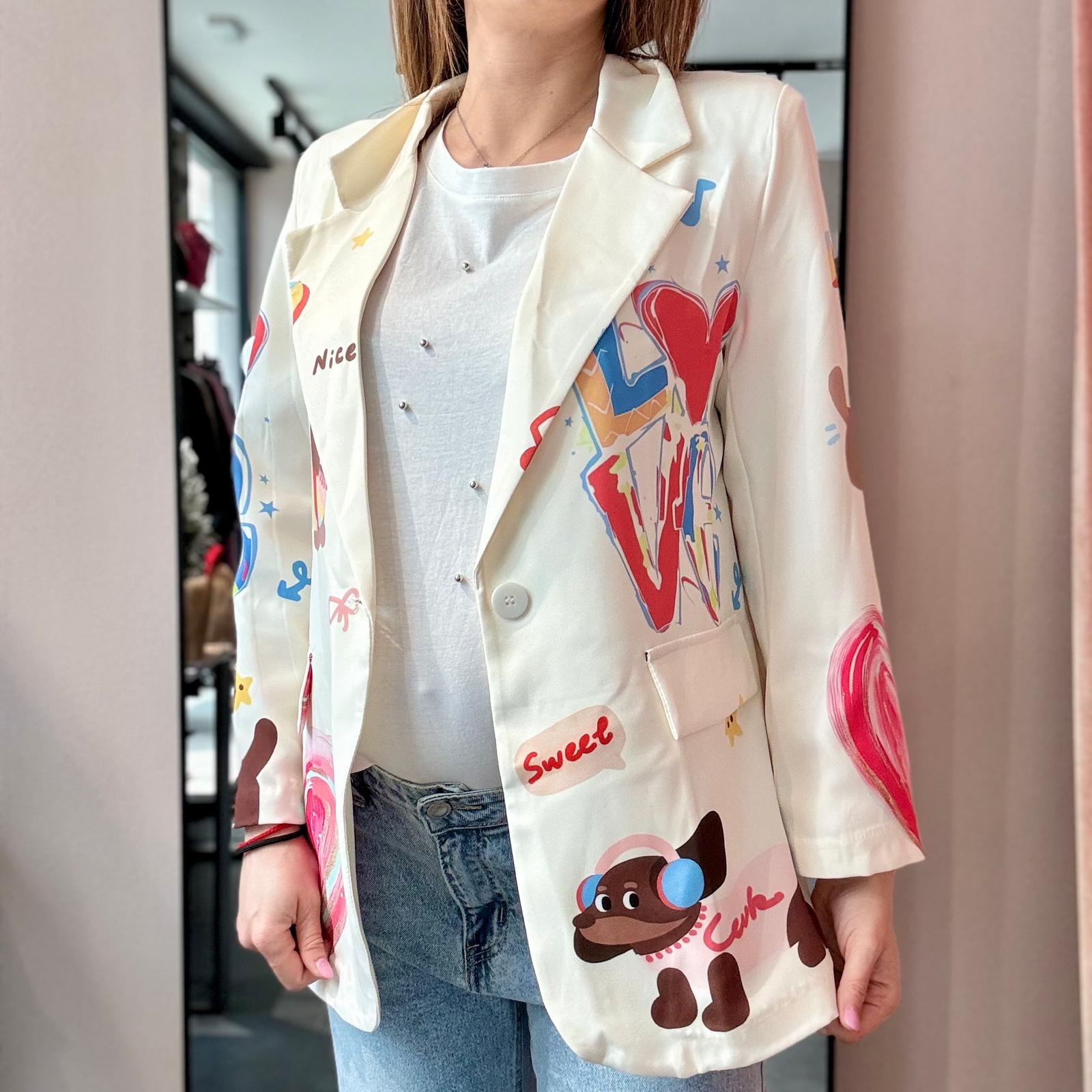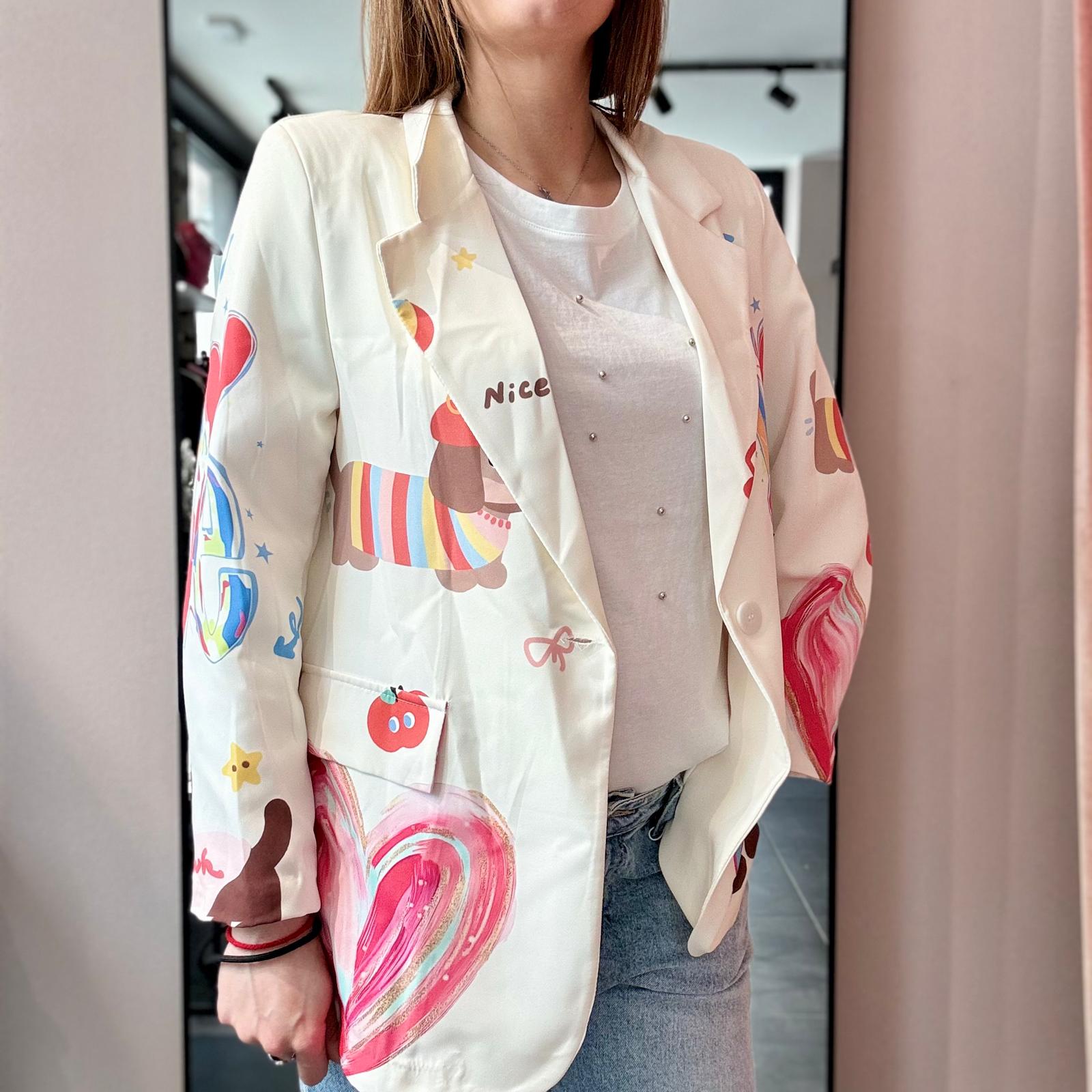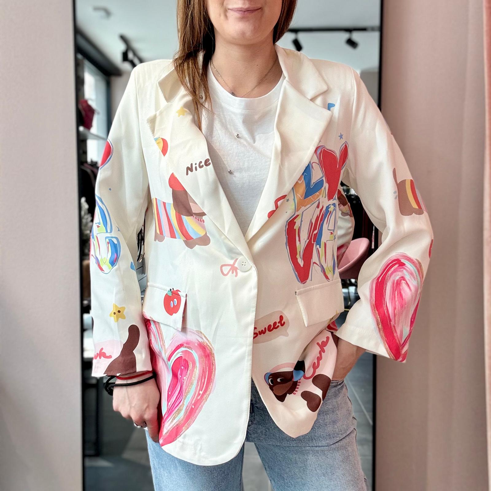 Giacca monopetto foderata dal taglio oversize, perfetta per dare carattere a qualsiasi outfit. Realizzata in tessuto primaverile, è leggera e confortevole.