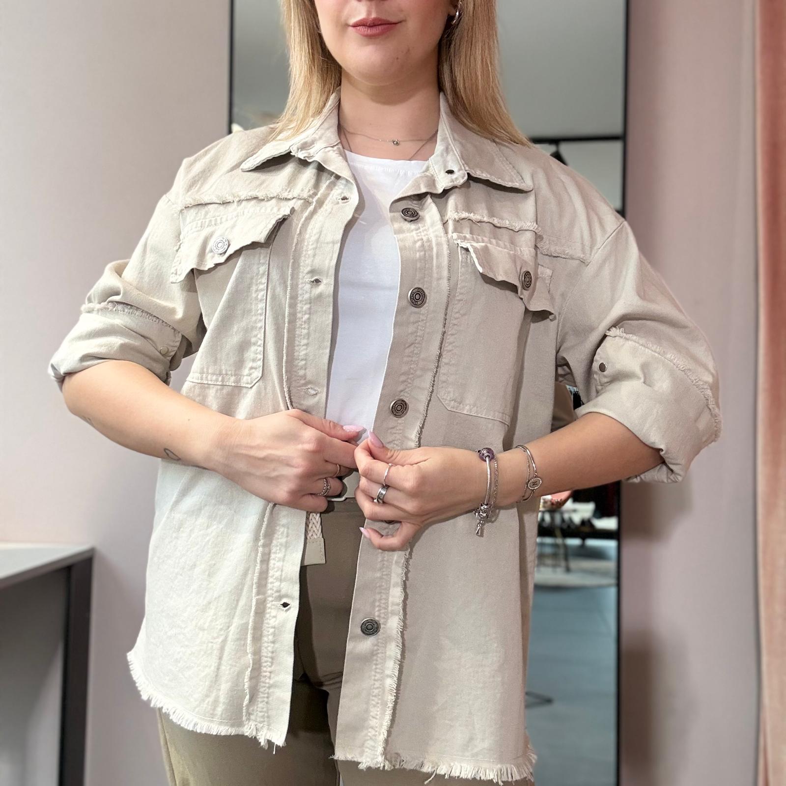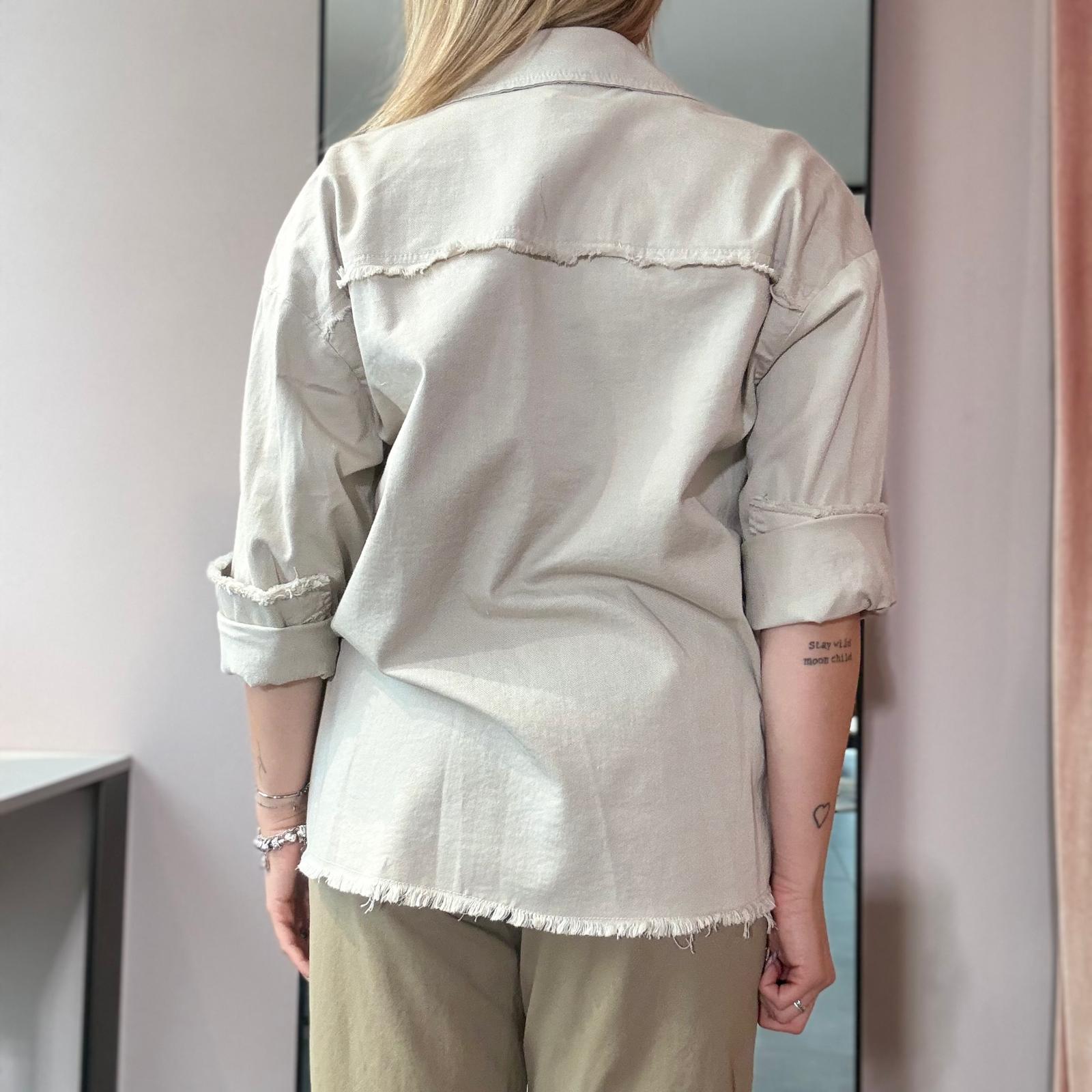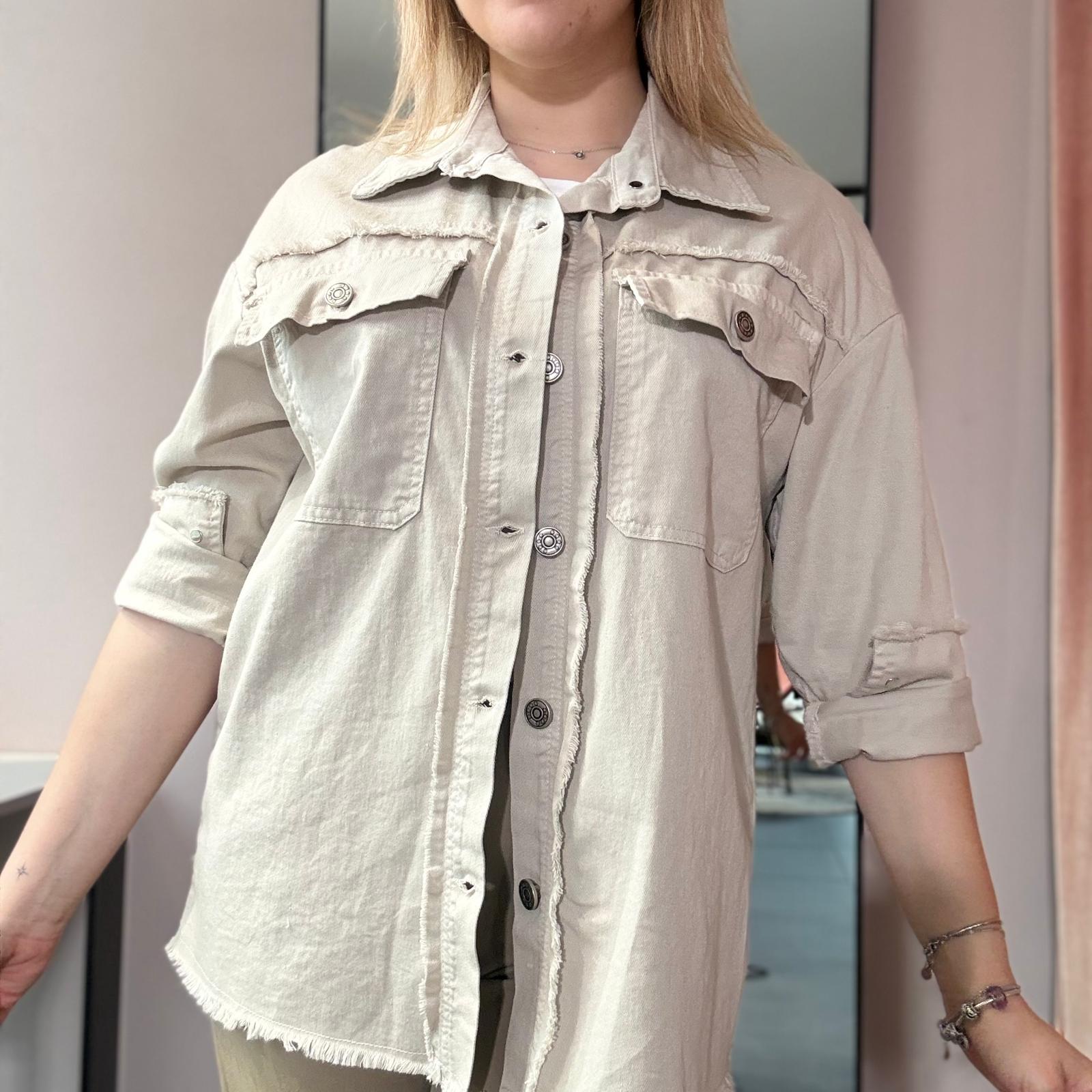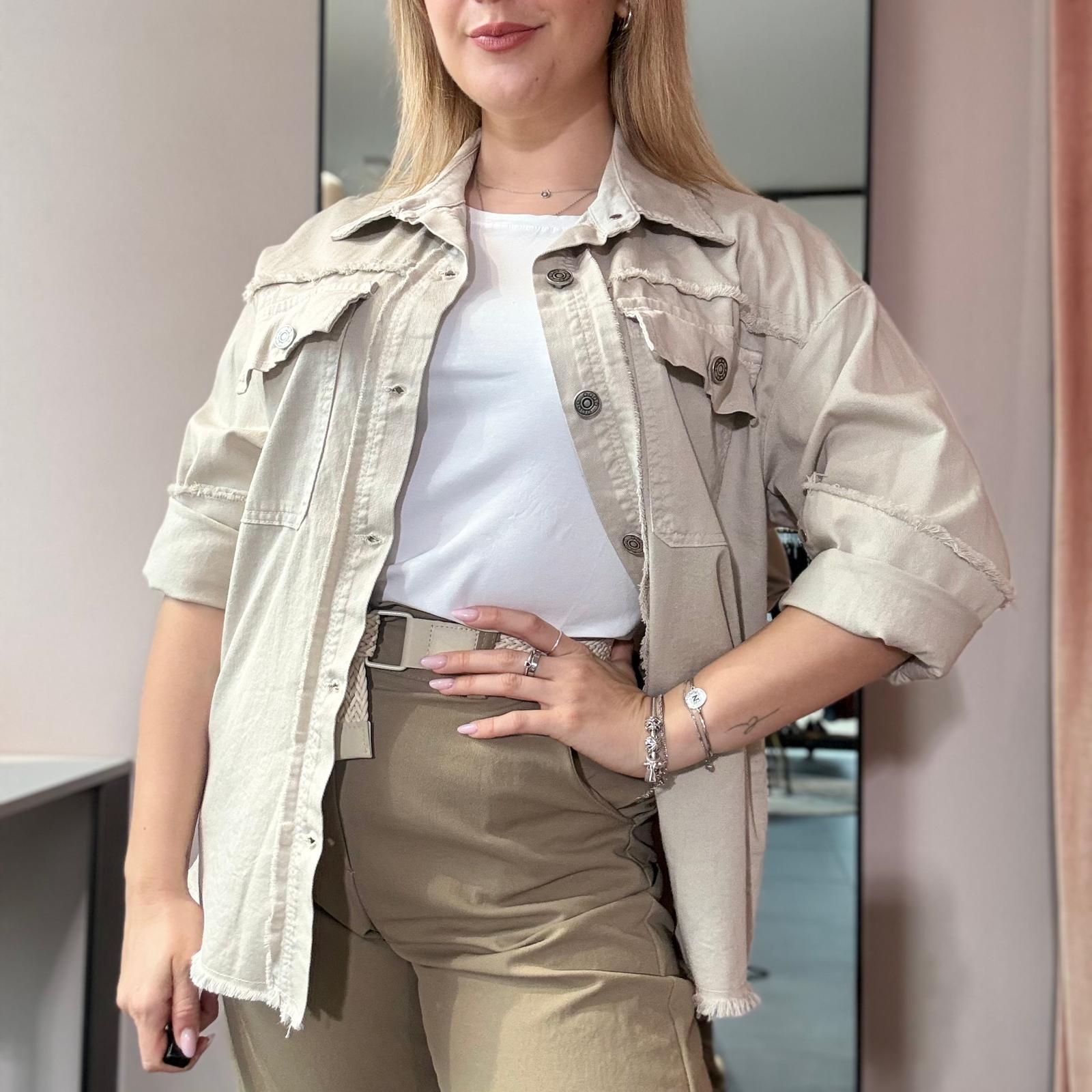 La vestibilità morbida taglia unica la rende comoda e facile da indossare su diverse fisicità, mentre il taglio vivo lungo la chiusura, sulle tasche e sul fondo aggiunge un dettaglio moderno e attuale.