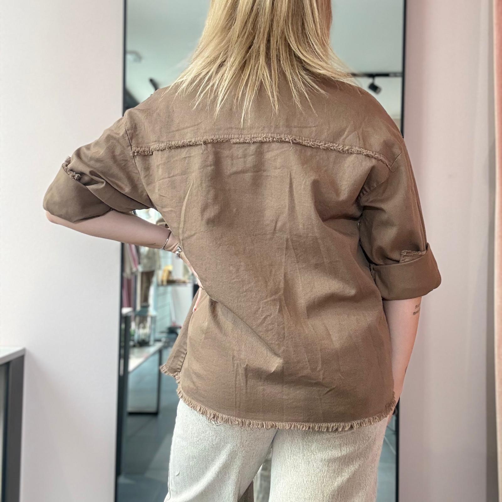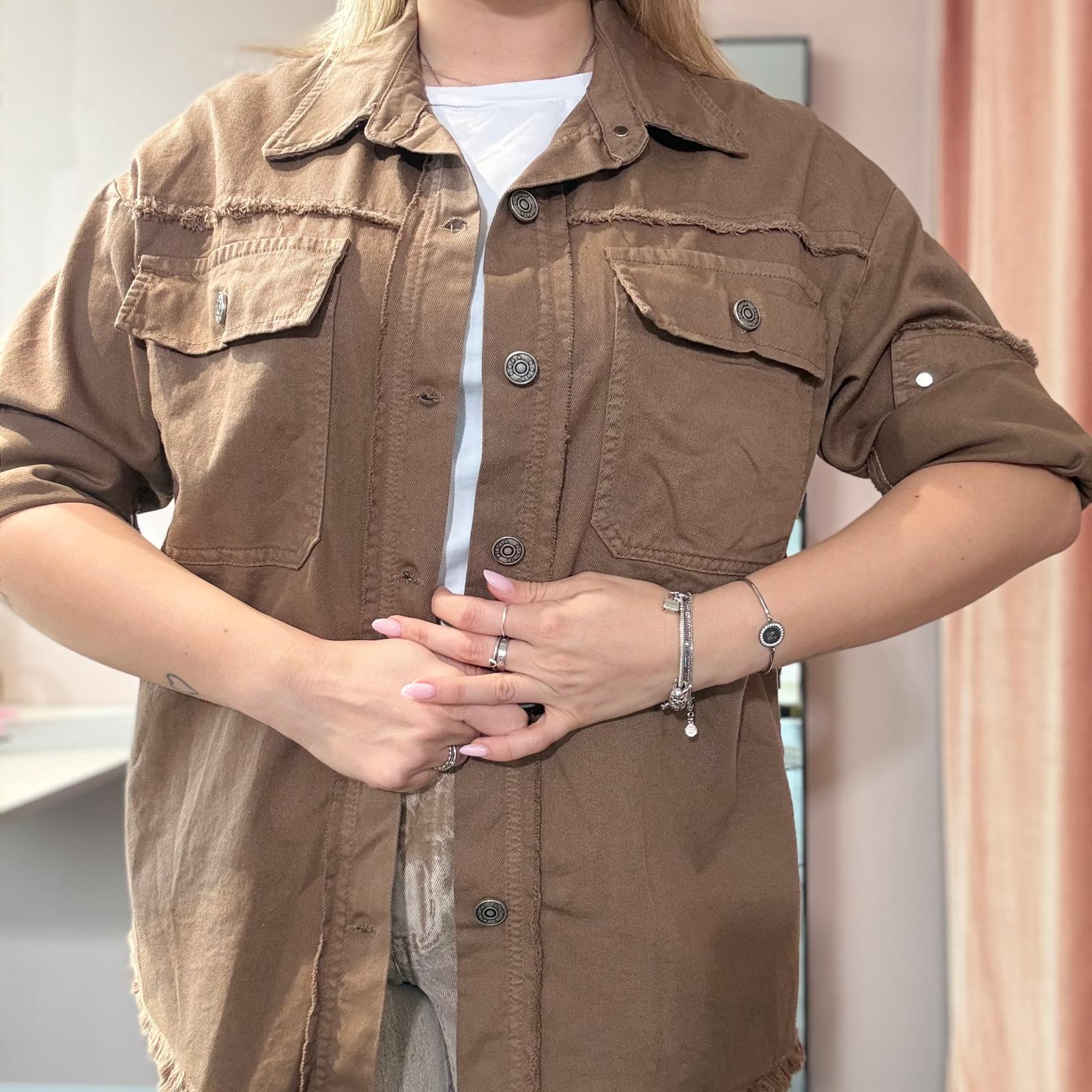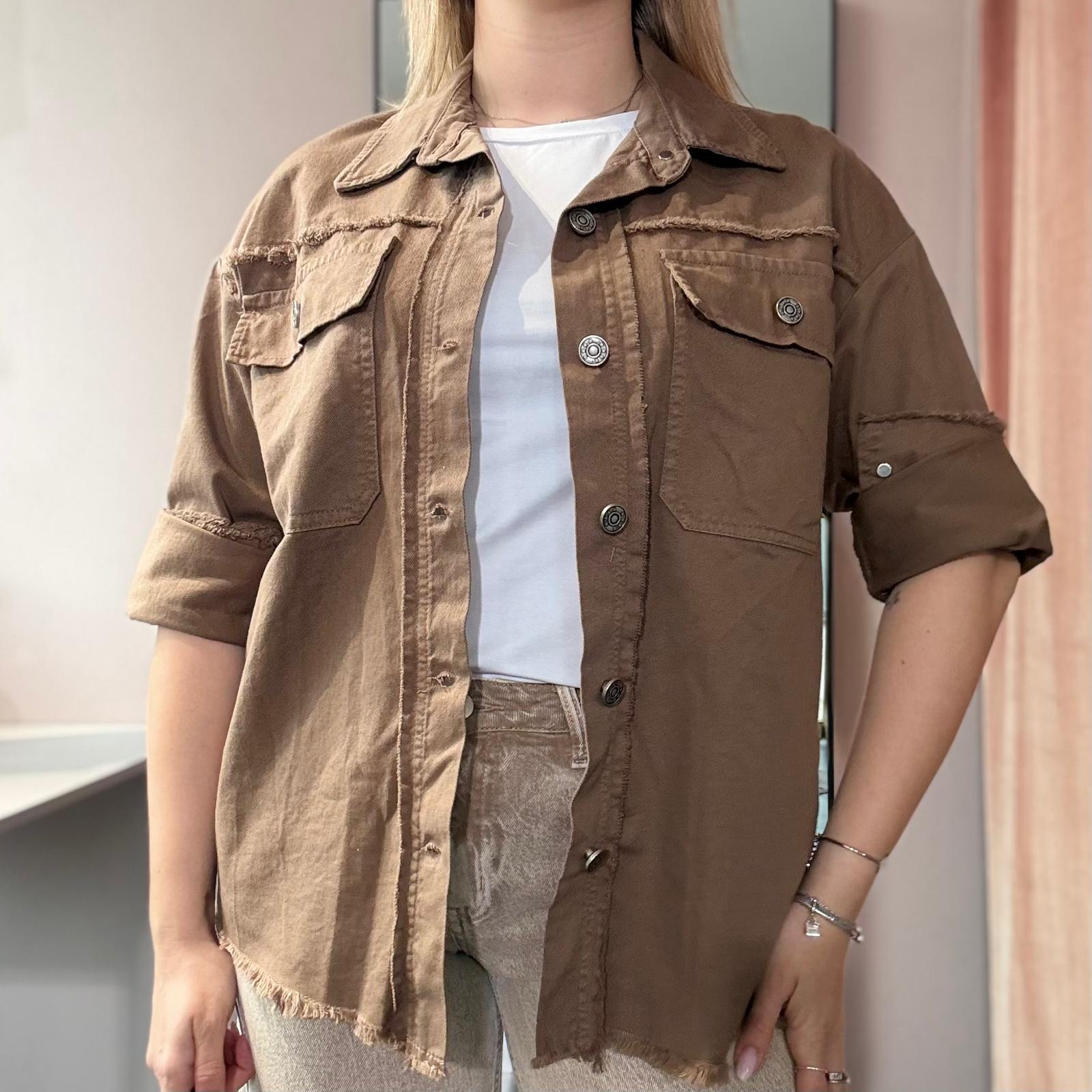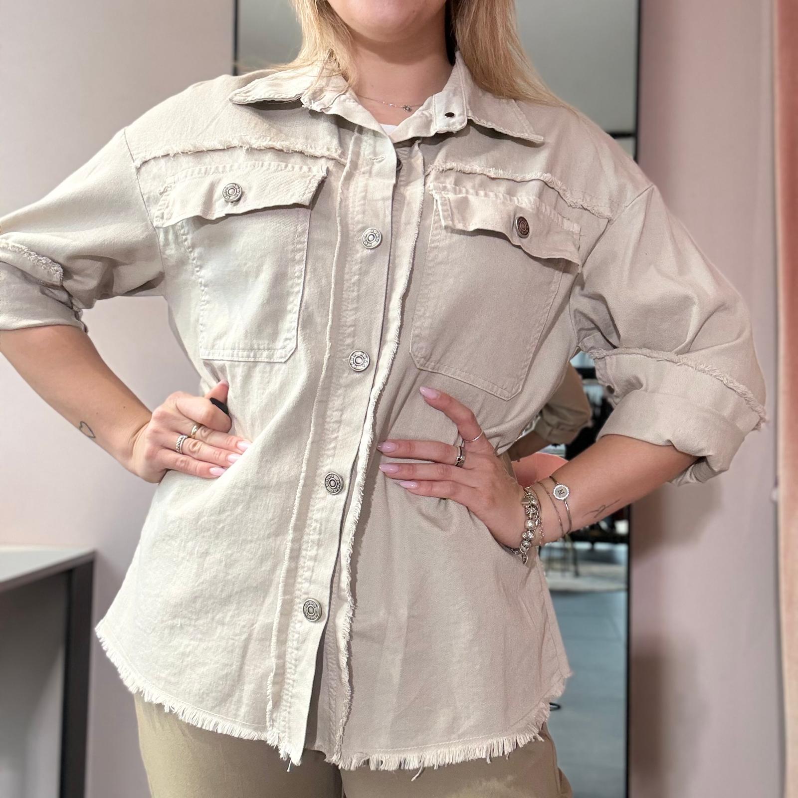 La vestibilità morbida taglia unica la rende comoda e facile da indossare su diverse fisicità, mentre il taglio vivo lungo la chiusura, sulle tasche e sul fondo aggiunge un dettaglio moderno e attuale.