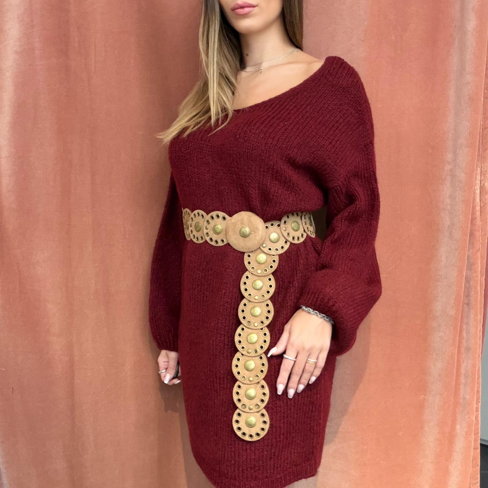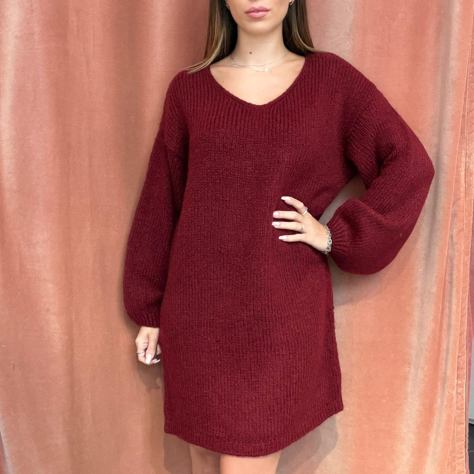 Grazioso vestito in maglia, perfetto da abbinare con un paio di calze o jeans.