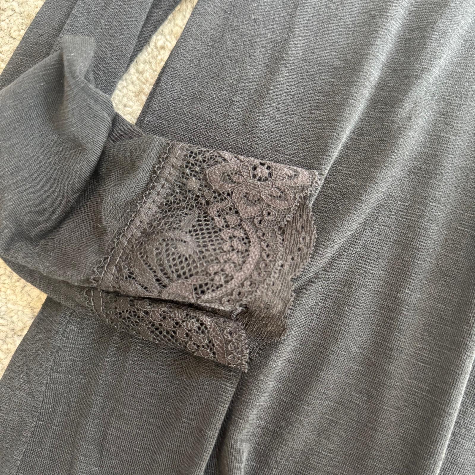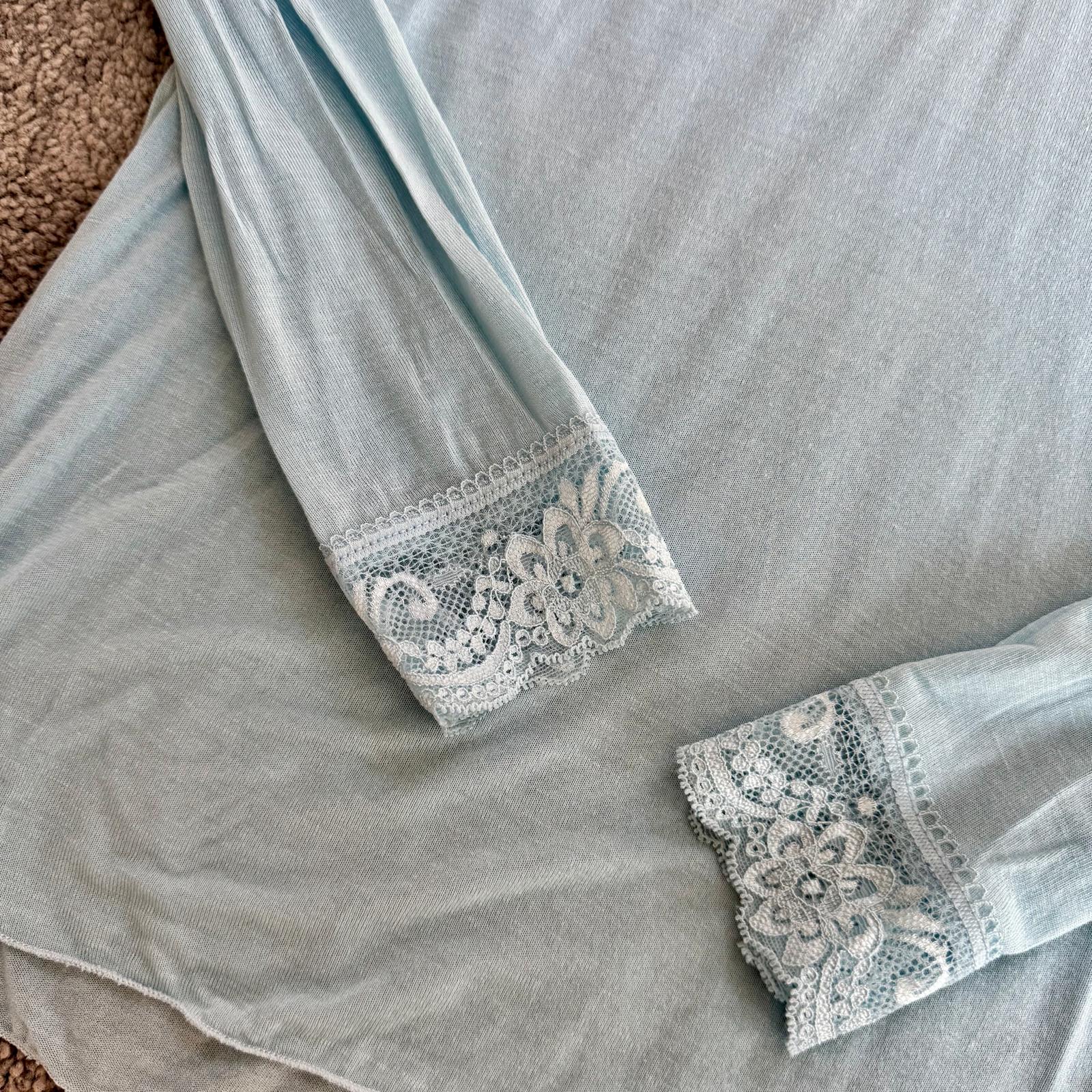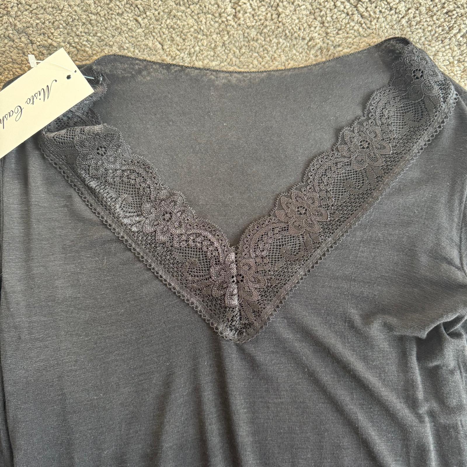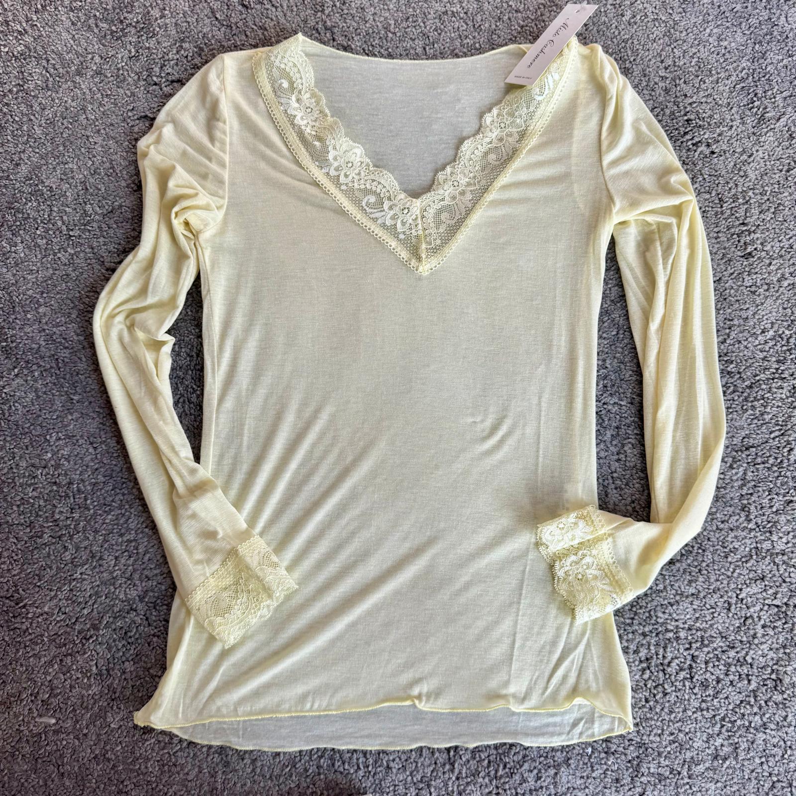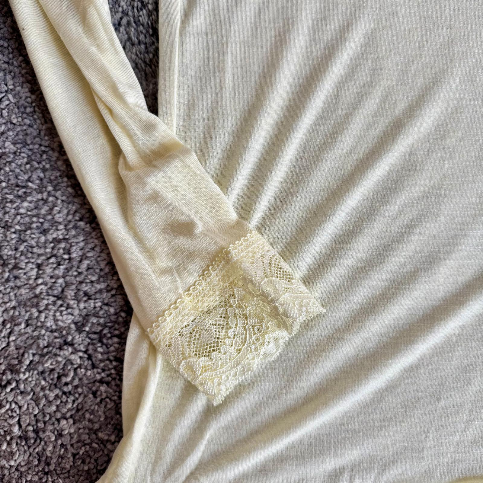 Modello con scollo a V rifinito in pizzo e dettagli in pizzo anche sui polsini, per un tocco femminile e raffinato.