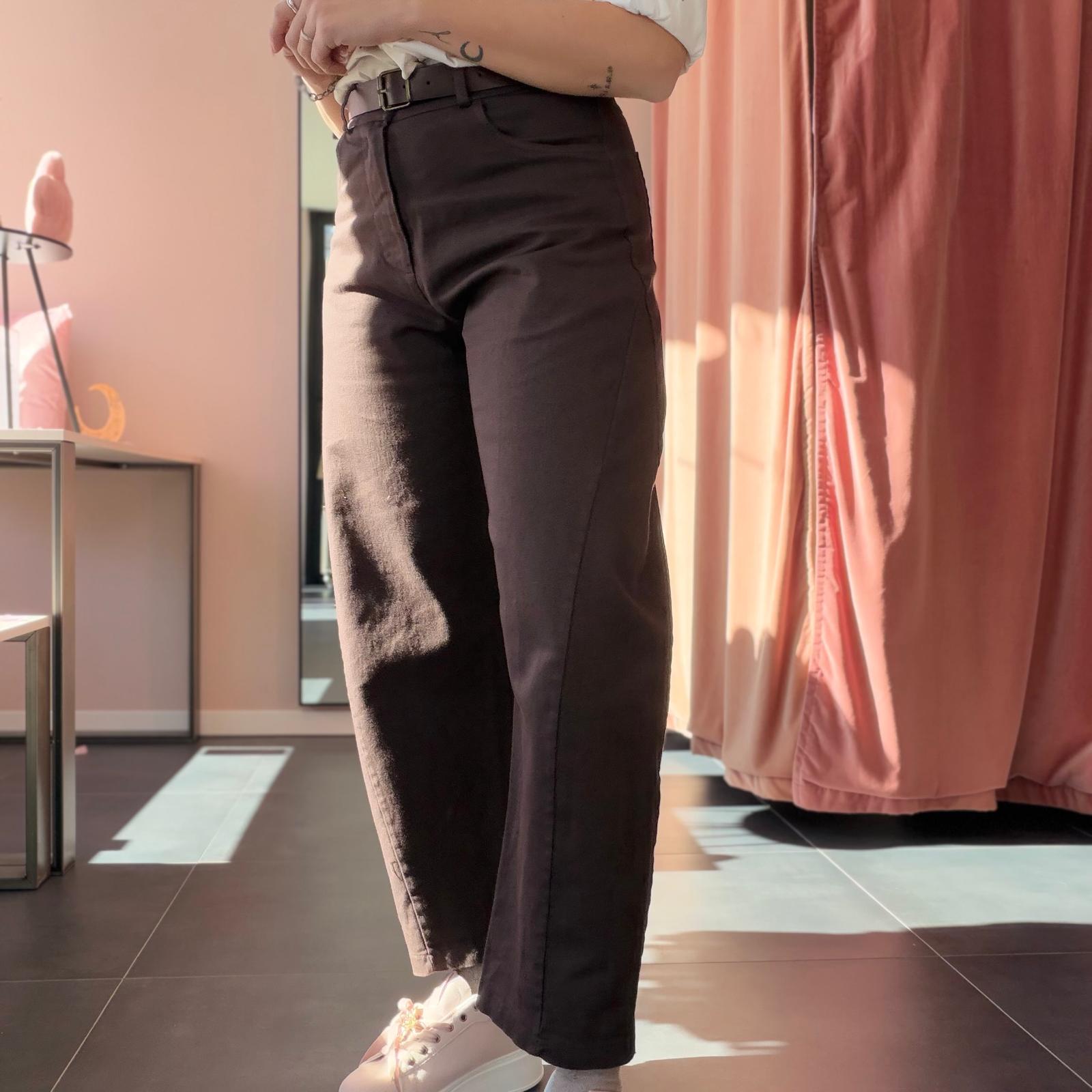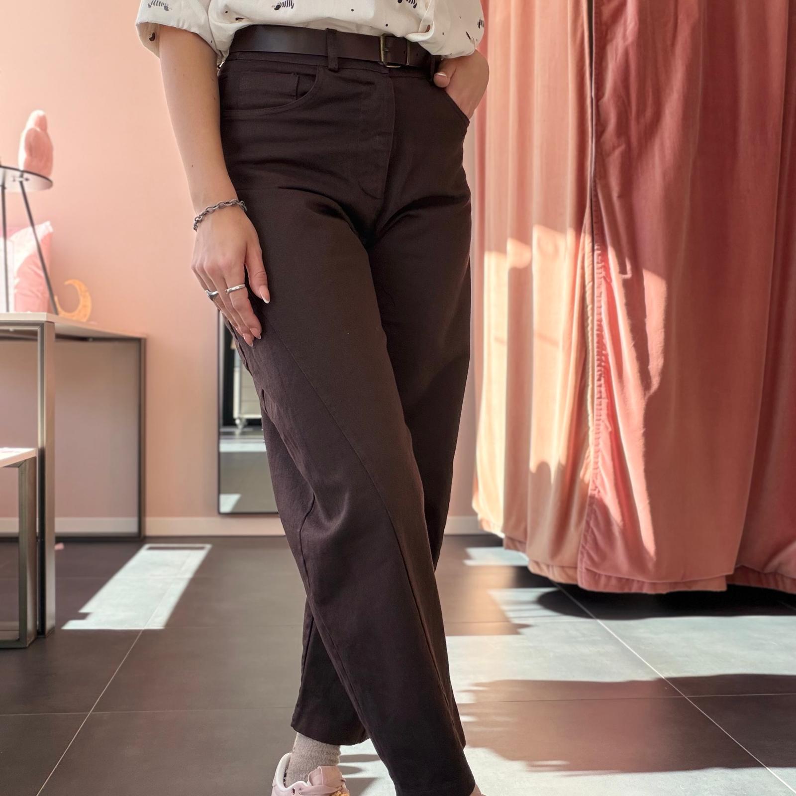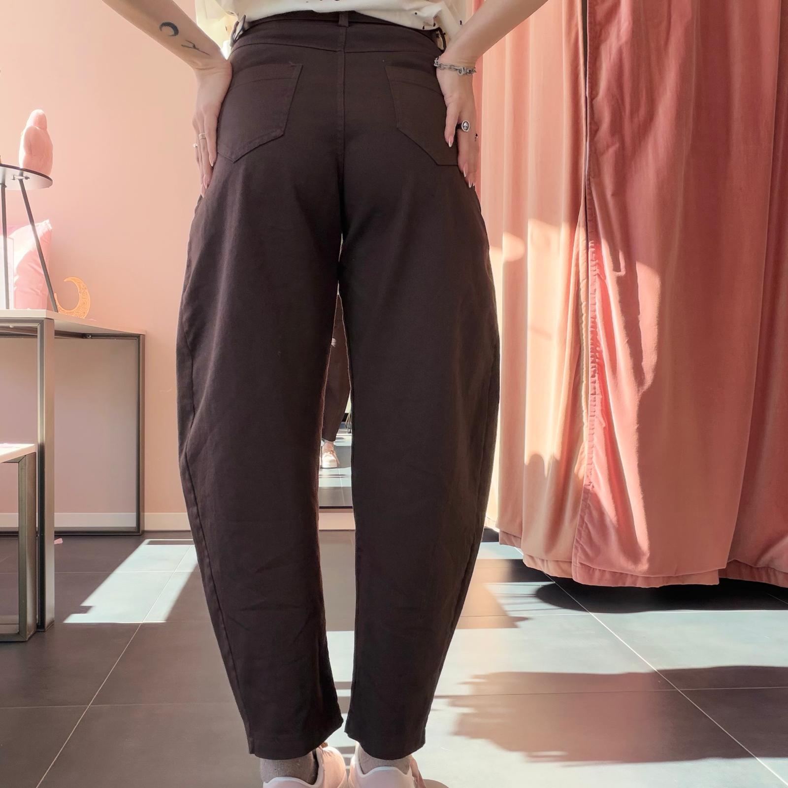 Dotati di cintura inclusa e gamba morbida, presentano una vestibilità regolare e non elasticizzata. Disponibili nelle taglie S, M e L, nel colore marrone. Molto belli da indossare con una t-shirt infilata dentro per un look casual, moderno e curato.
