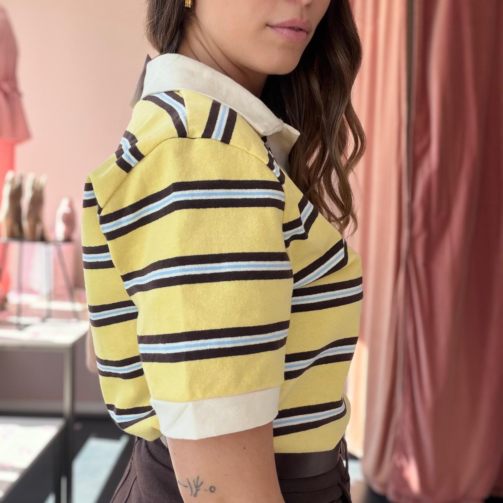 Taglia unica con vestibilità piuttosto abbondante, fino a una L comoda. Disponibile nelle varianti azzurro, rosa e giallo, è perfetta da abbinare a jeans a vita alta per un look fresco e di tendenza.